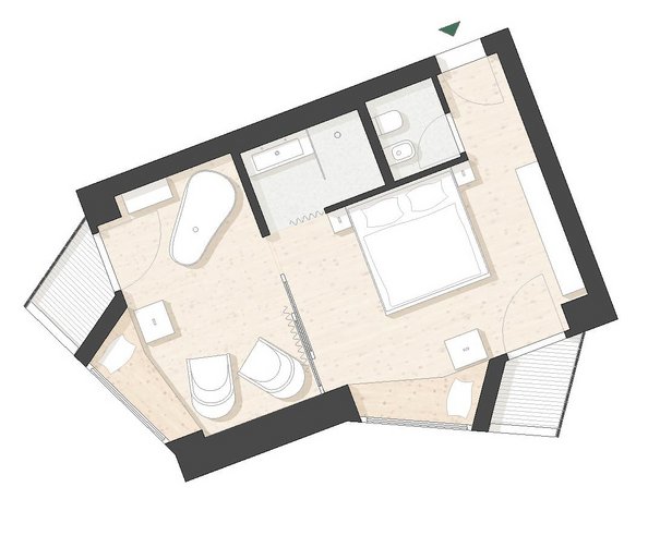Questa suite è dotata di ben due nicchie panoramiche. La soluzione più adatta per chi ama rilassarsi contemplando la natura.