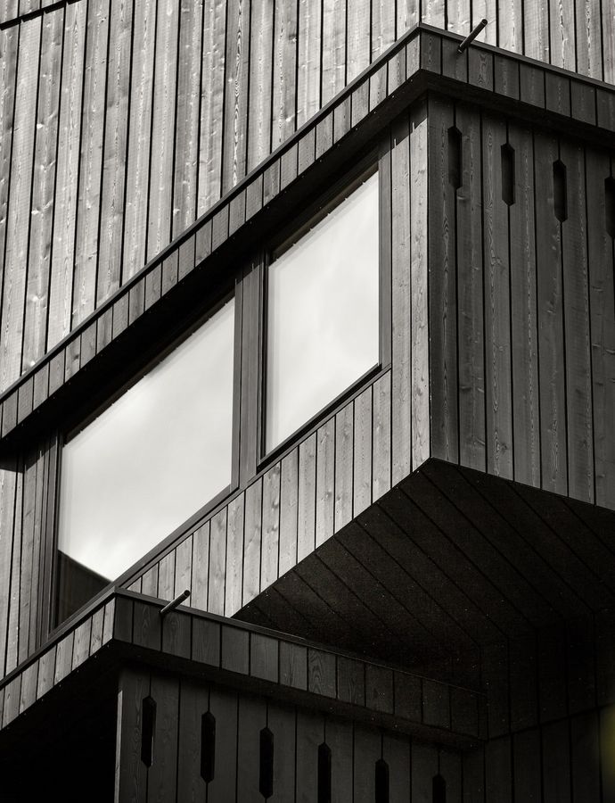 L’asimmetria planimetrica è funzionale alla sostenibilità del progetto, con facciata e copertura dimensionalmente massimizzati verso sud-est e superfici ridotte sul lato nord. L’ampliamento è strutturato su sei piani. Oltre alle 20 camere, è compresa anche una zona wellness e l’allargamento del ristorante.